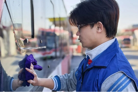 与此同时,学生们更是走进北京公交集团大1路老山公交场站,开展车厢深度清洁志愿服务。活动前,学院制定详细操作指南,明确作业标准与安全原则;活动中,学生们分工协作,细致清洁车厢各个角落,还与公交技师研讨清洁方案优化等问题,在实践中体会公交从业者的辛苦,深化职业认知。